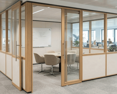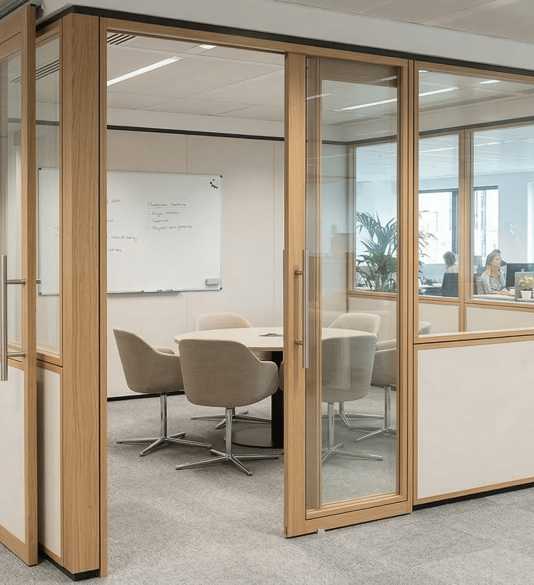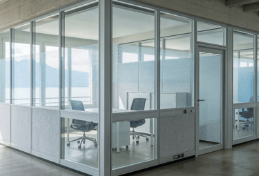 Cloisons Vitrées : Grâce à l'utilisation de double vitrage acoustique (verres d'épaisseurs différentes pour casser les fréquences sonores), elles permettent de conserver la vue tout en bloquant efficacement les bruits de l'open-space.