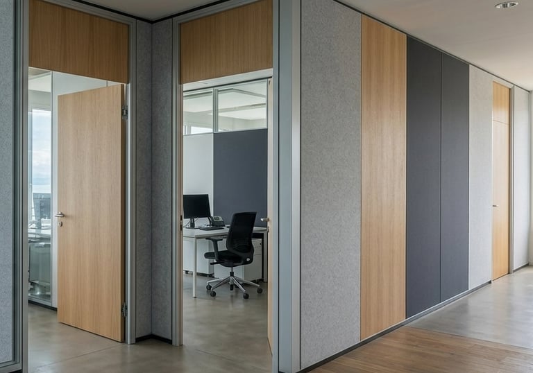 Cloisons Pleines : Elles offrent la meilleure isolation, pouvant atteindre une réduction sonore allant de 40 dB à plus de 50 dB. C'est le niveau requis pour que des conversations confidentielles dans un bureau de direction ne soient pas audibles dans le couloir.